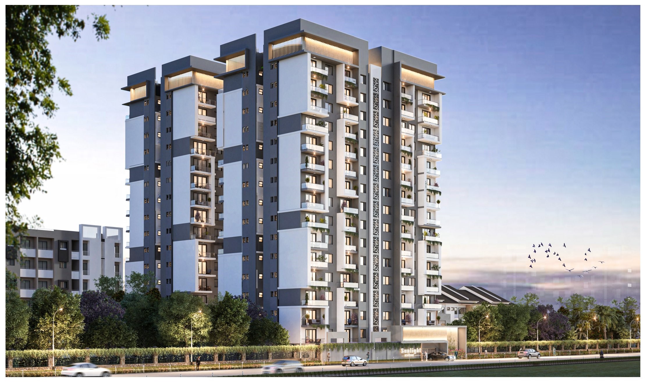The compound comprises a set of 3BRM ALL ENSUTIE and 2BRM varying from standard to luxury units.
