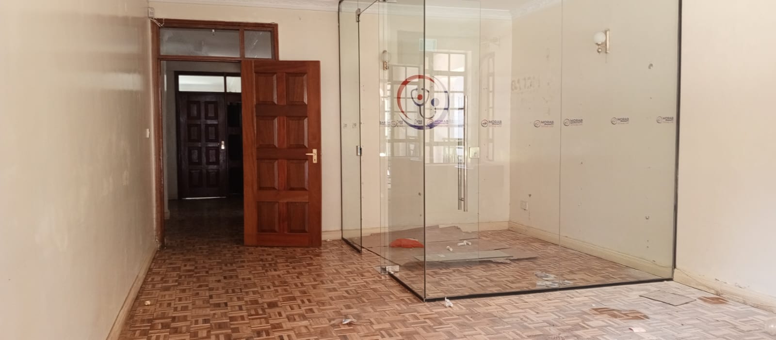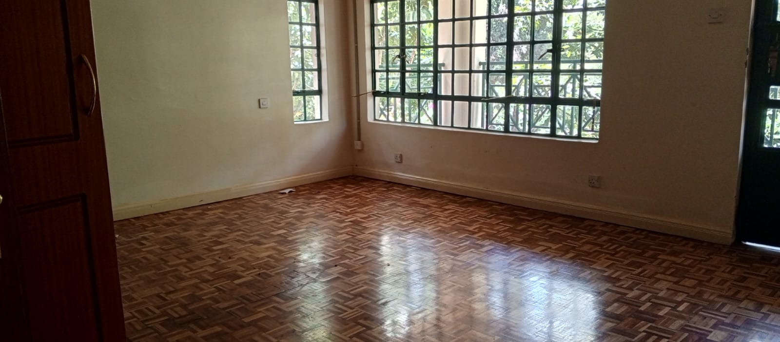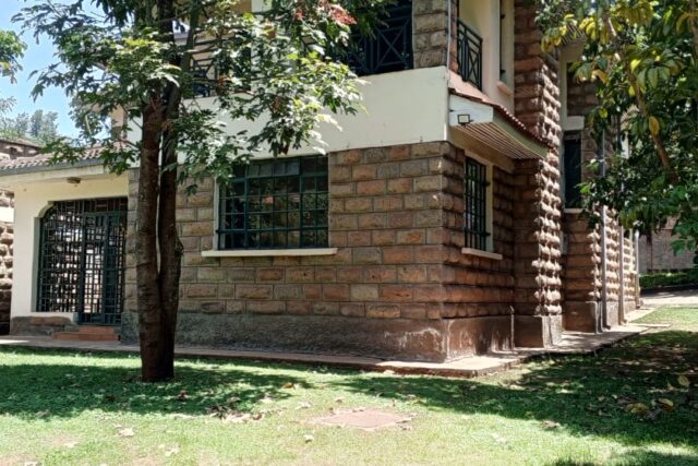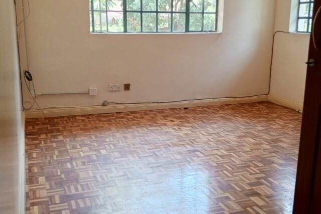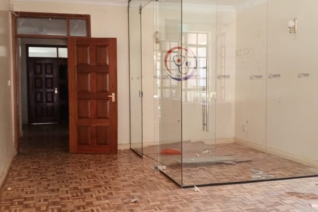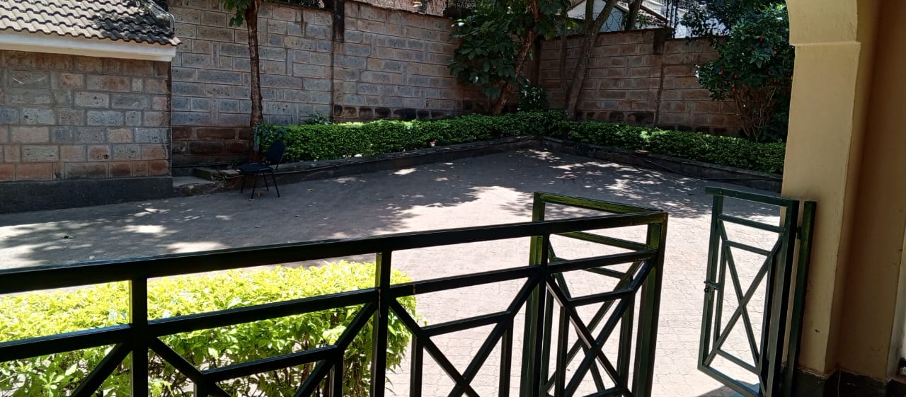 located in a very convenient place for bot public transport and easy directions ,the office space enjoys private compound with manicured lawn and trees ,cabro parking for about 7 cars and garage for 2 which can be expanded a extra working space, it has all wooden floor with 3 rooms ensuite, has attached 2 roomed dsq, backyard that can be used as outdoor working area,its fixed with working electric fence.